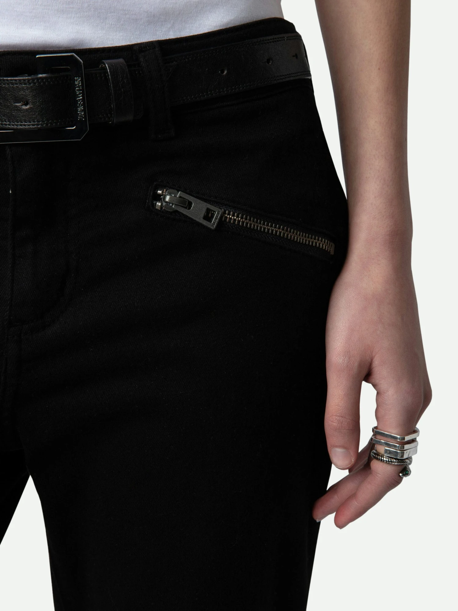 Zadig&Voltaire’s iconic Ava slim-fit jeans feature zipped pockets and raw edges for a casual and timeless rock “n” roll style.