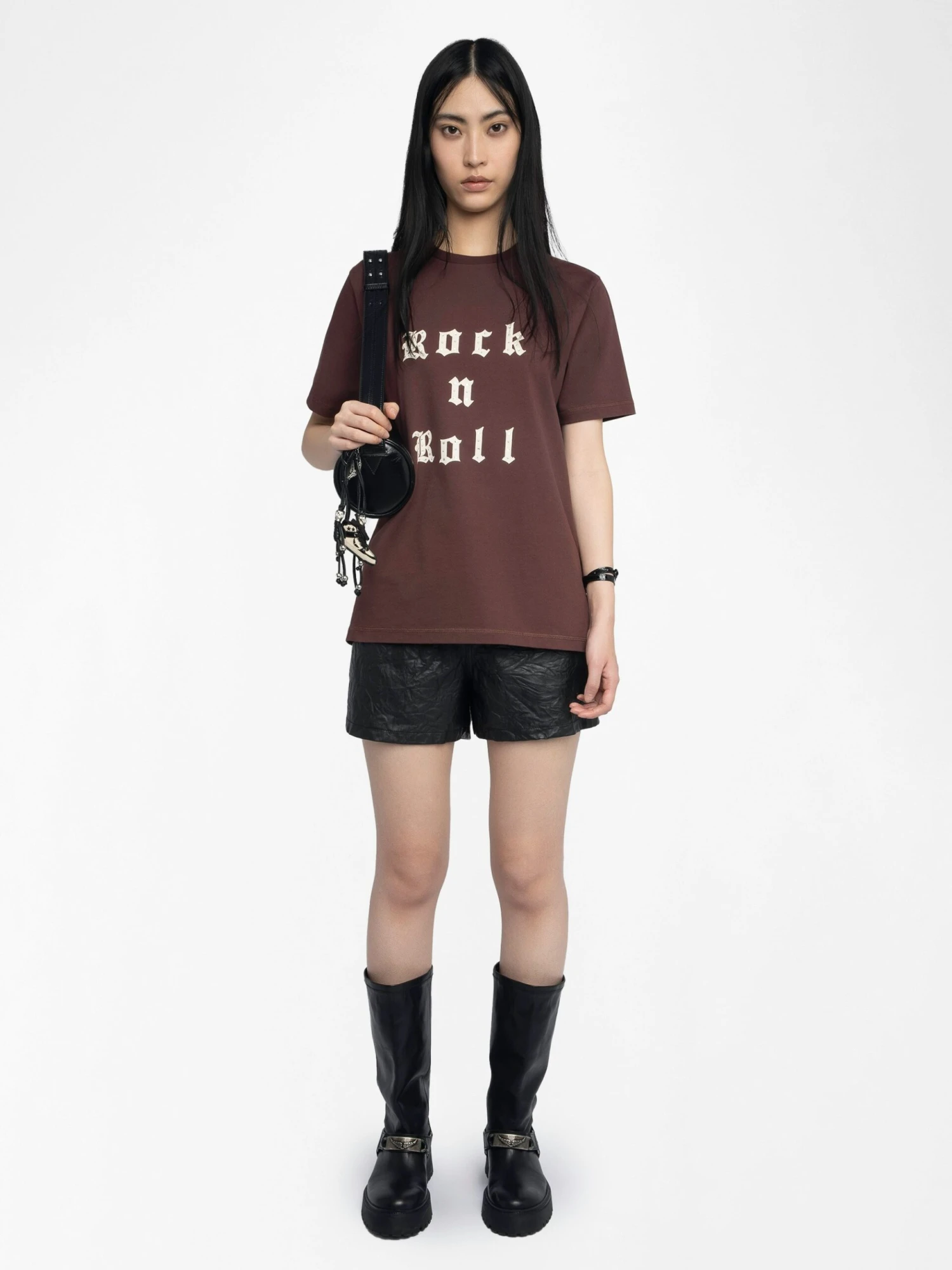 – “Rock’n’roll” print embellished with rhinestones