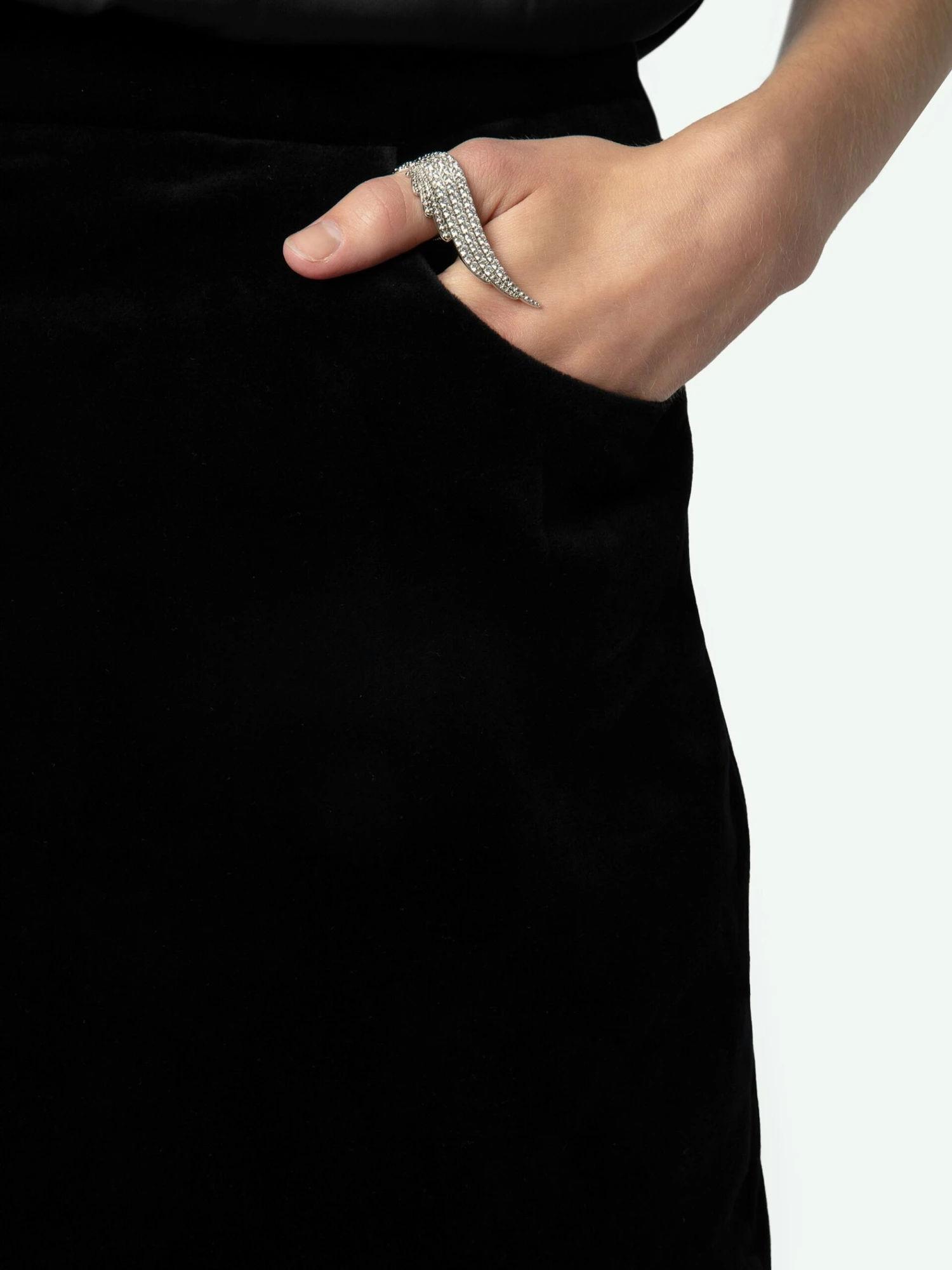 – Black velvet mini skirt with 2 front pockets