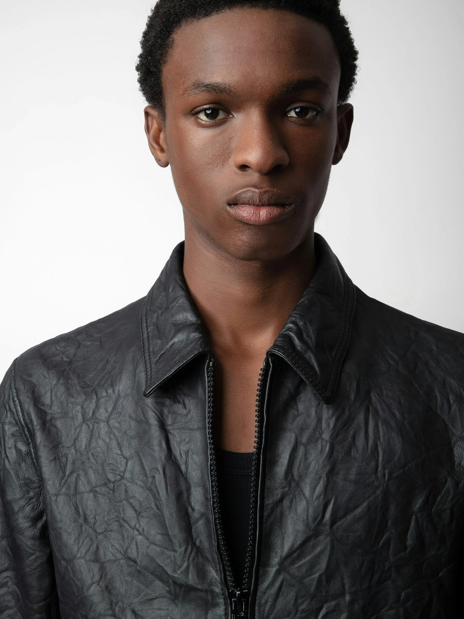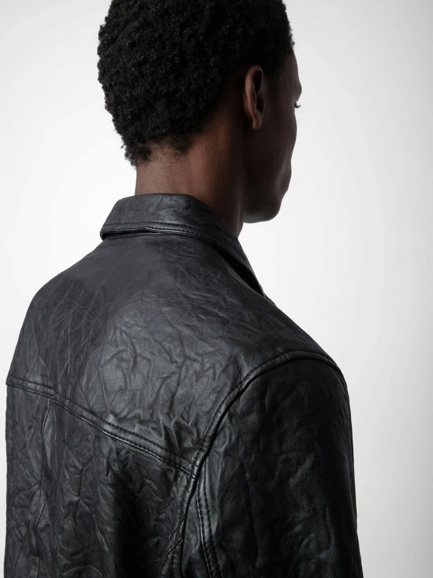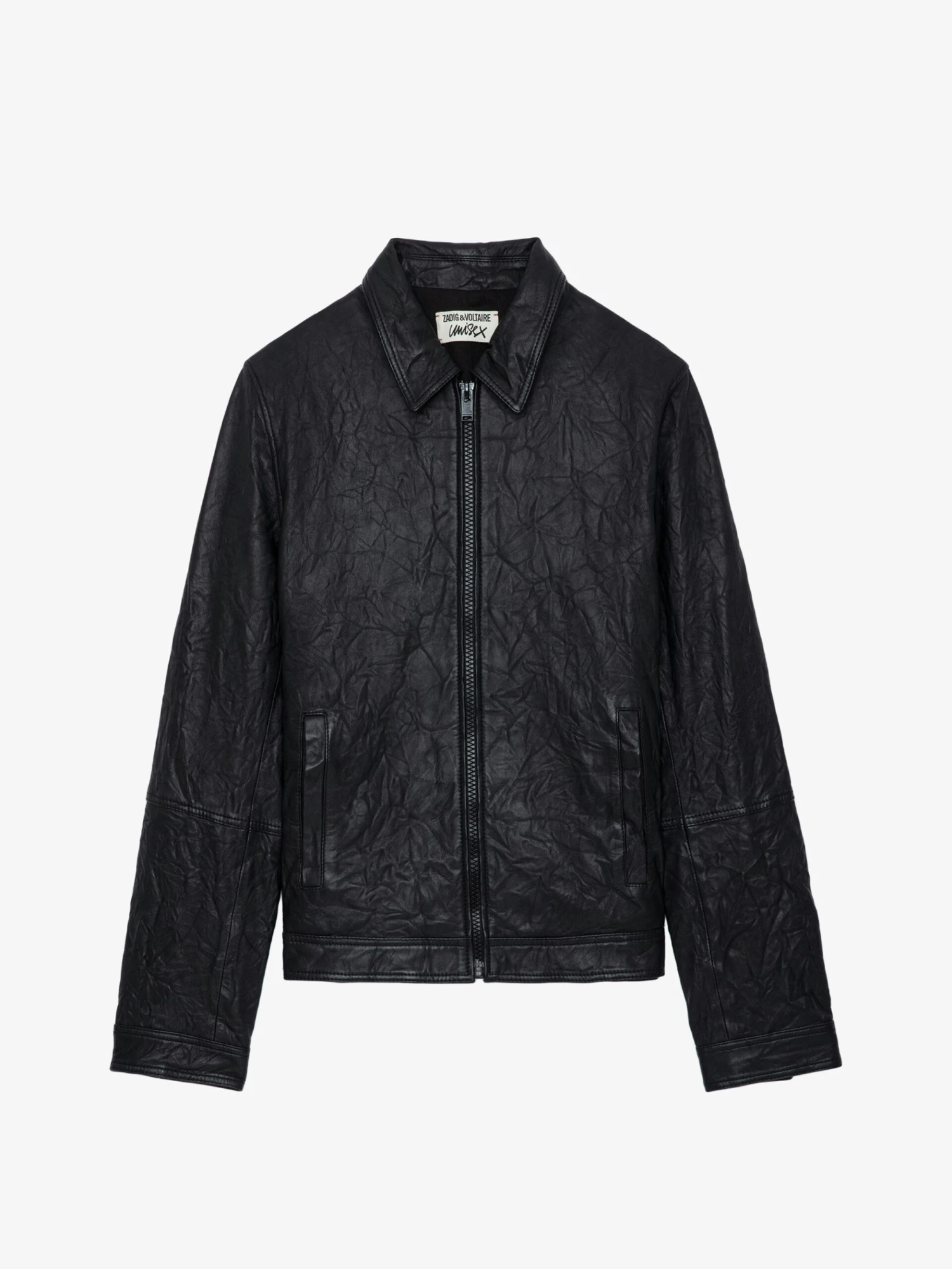 – Unisex black crinkled leather jacket