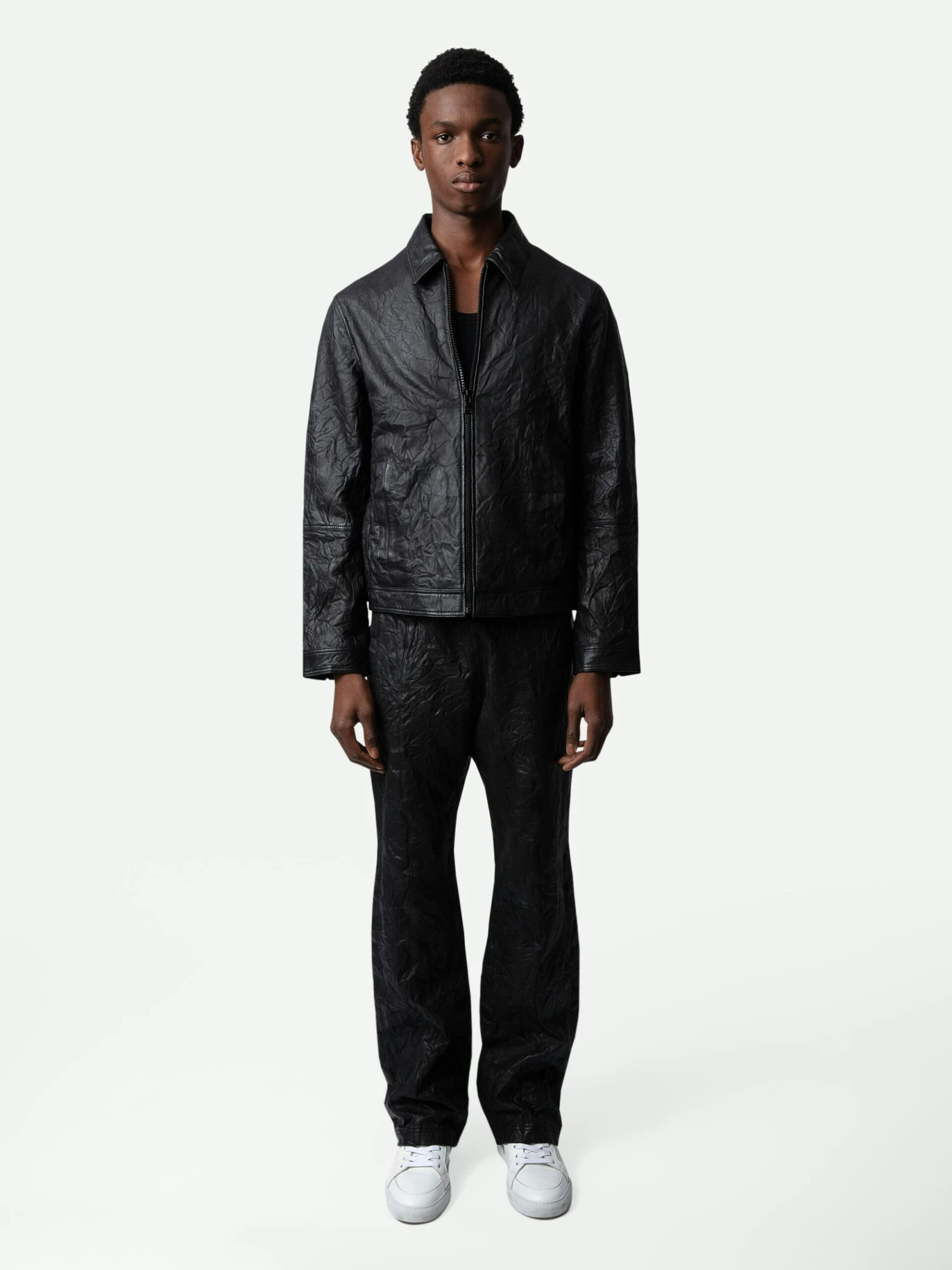 Zadig & Voltaire Lasso Crinkled Leather Jacket Black
