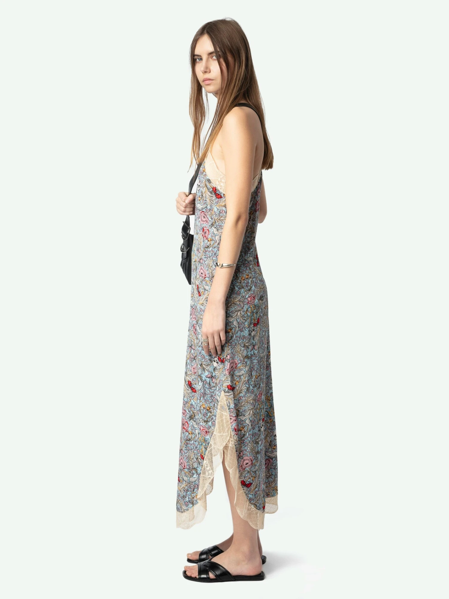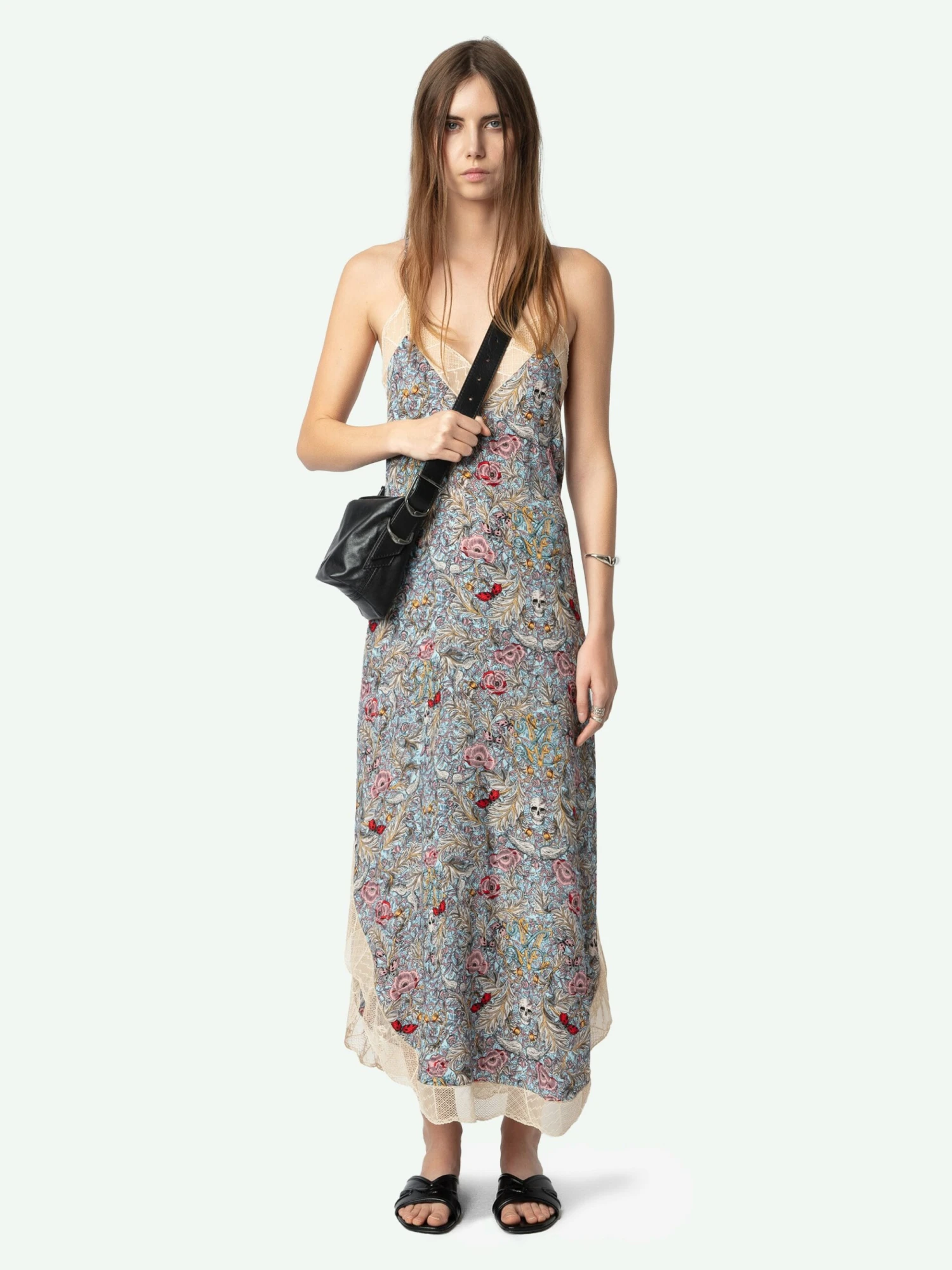 – Women’s long light blue crepe lingerie-style dress