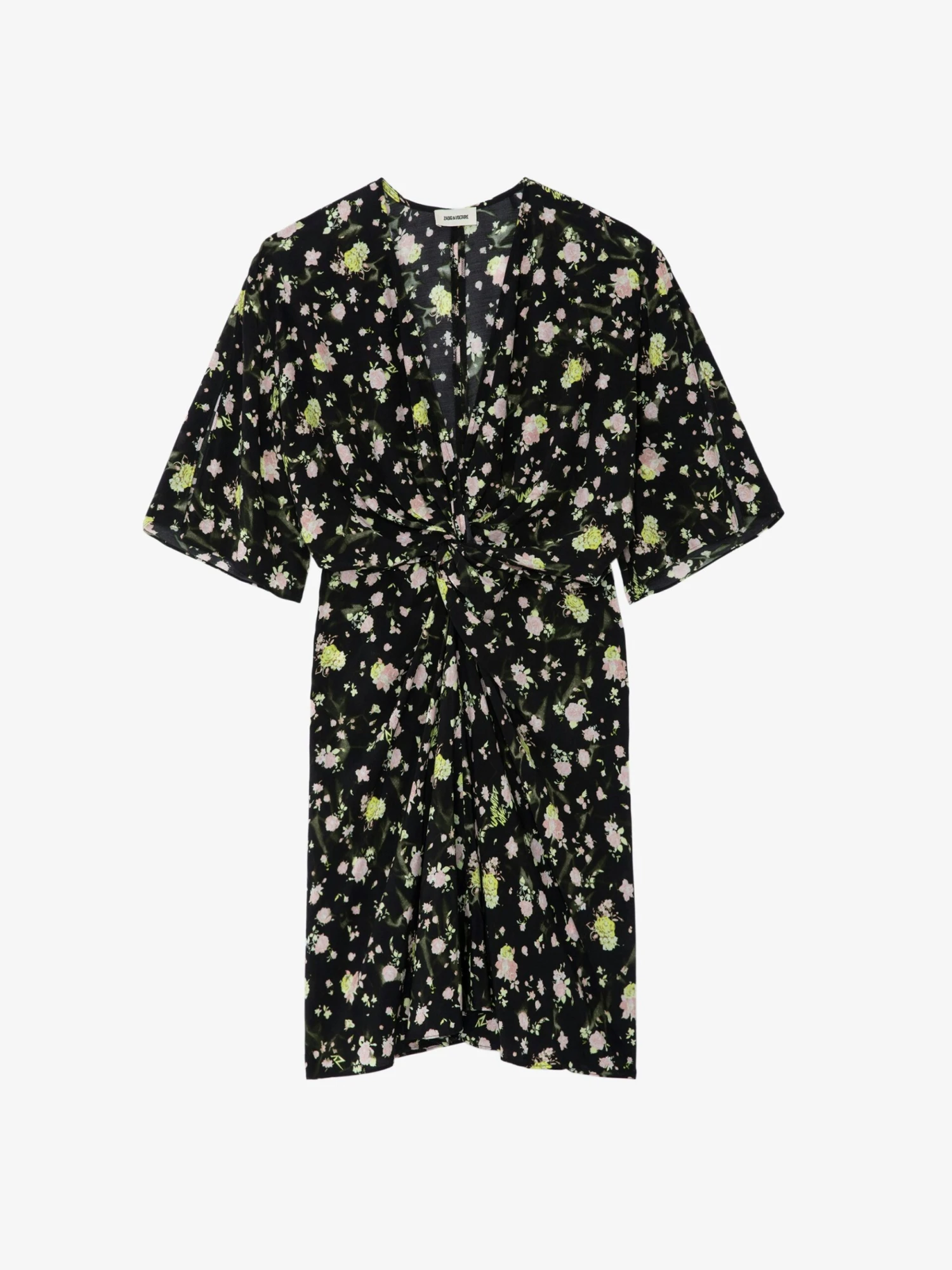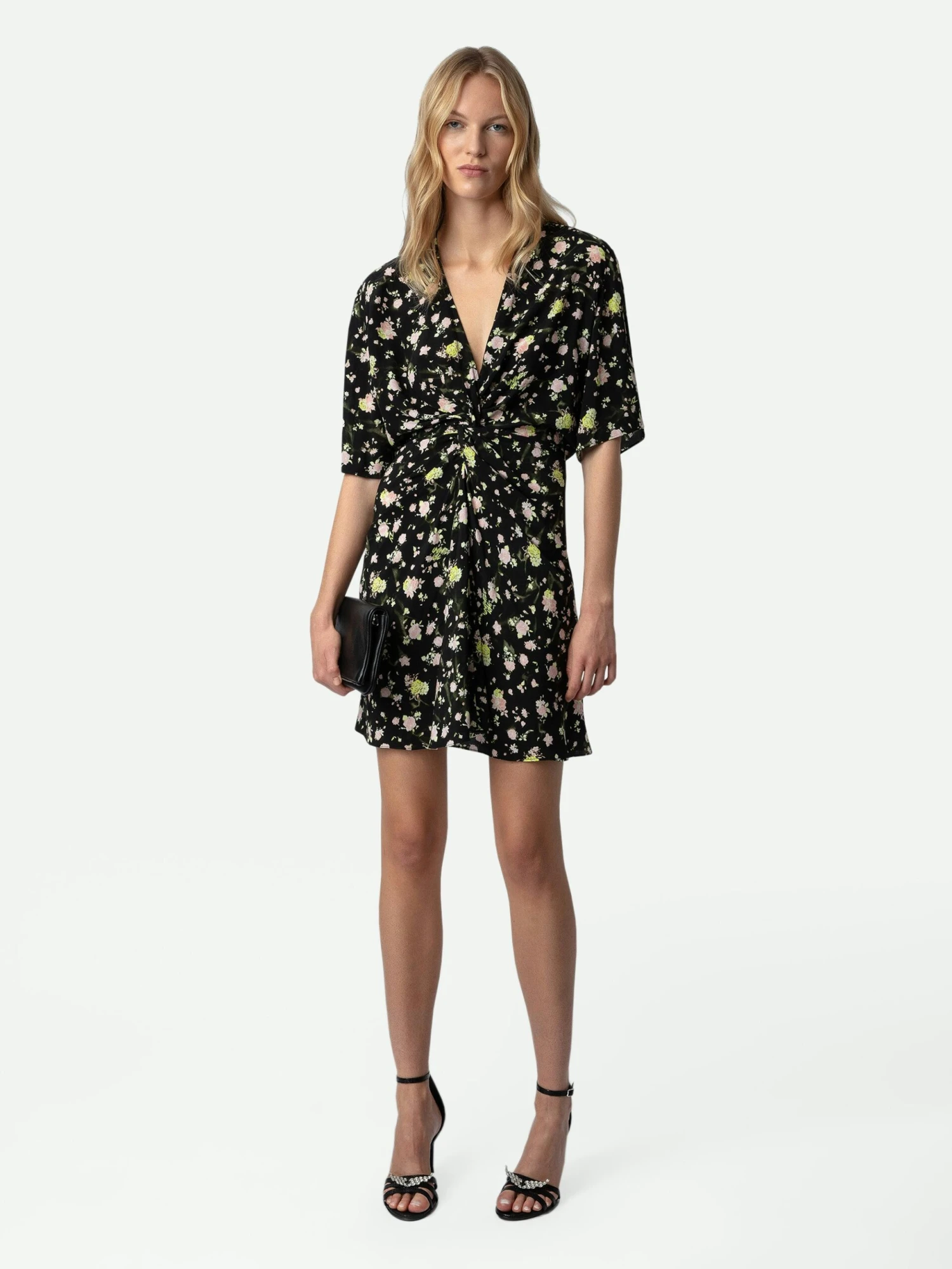 Zadig & Voltaire Rozom Soft Crinkle Roses Dress Black