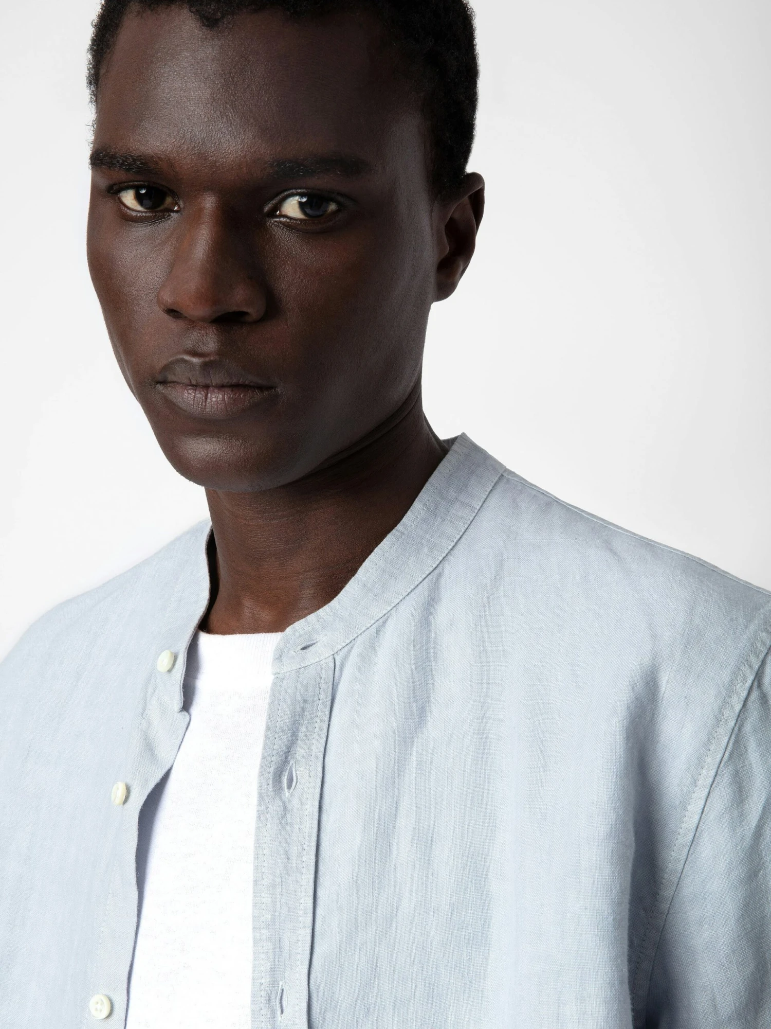 Be the first to review “Zadig & Voltaire Stan Linen Band Collar Shirt Ciel” Cancel reply