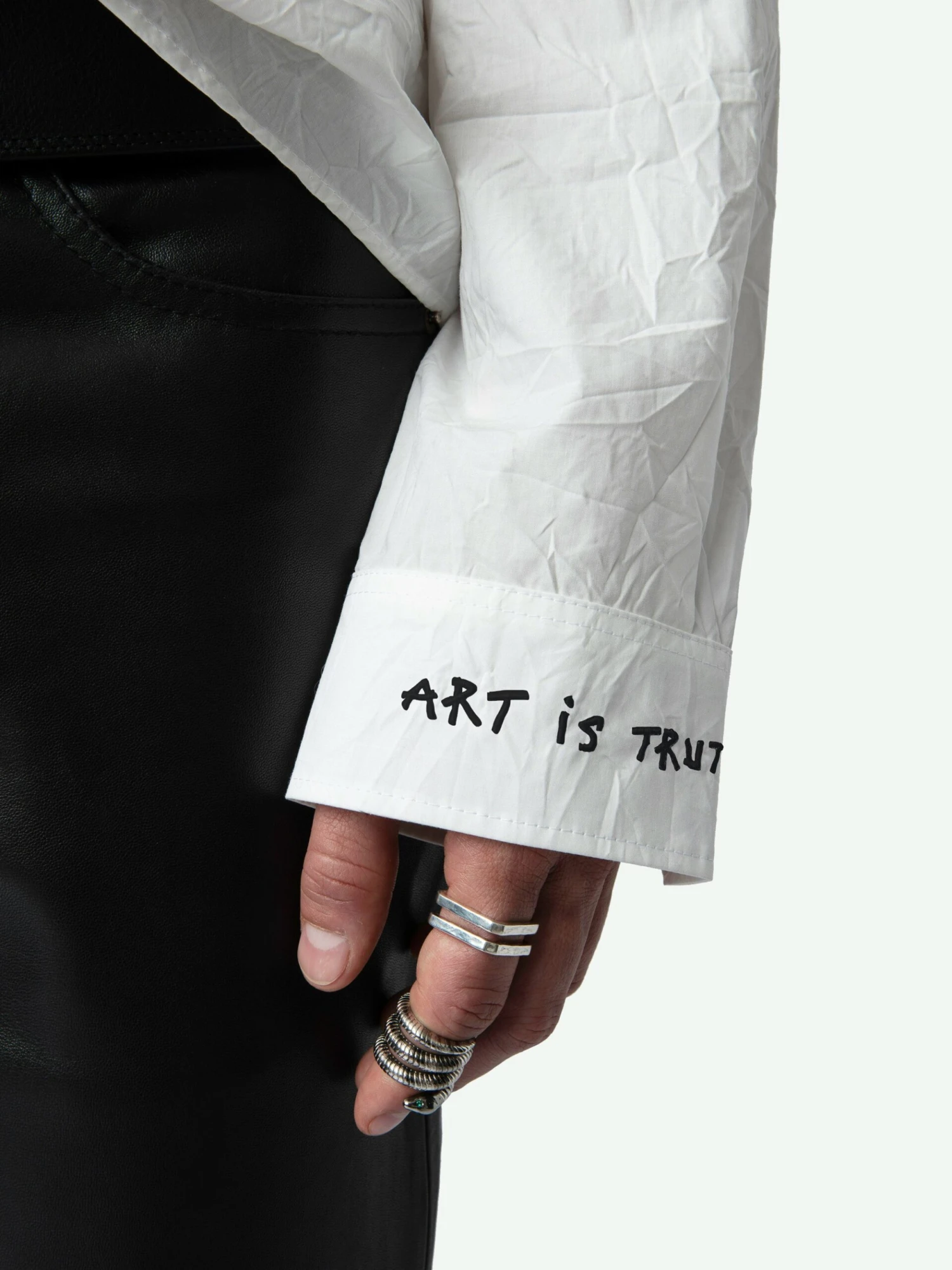 – Contrasting ‘Artist Rules’ embroidery