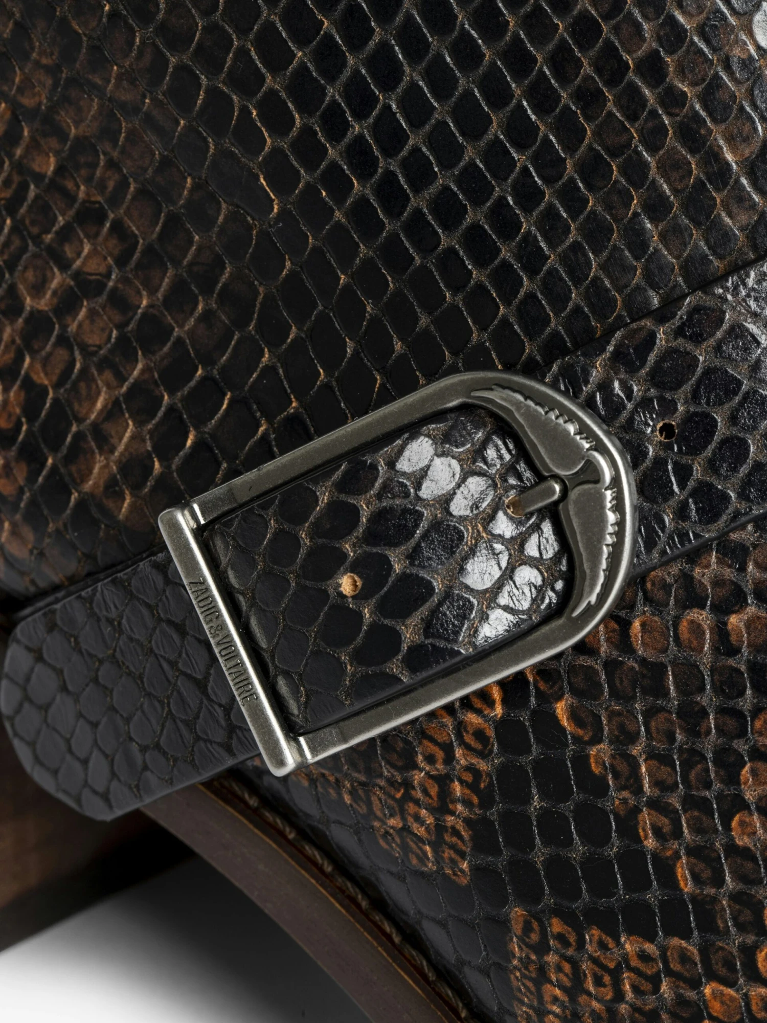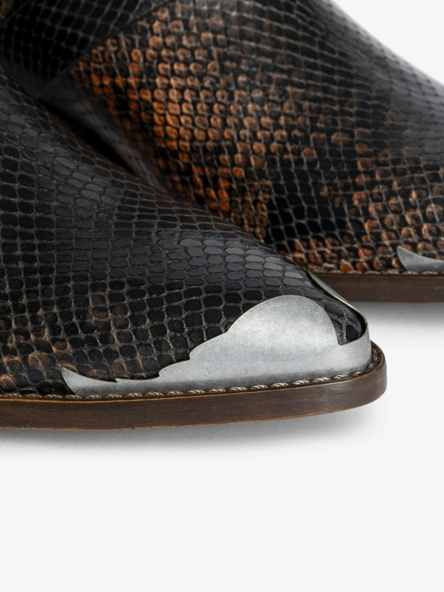 – Low ankle boots in bi-color python effect leather