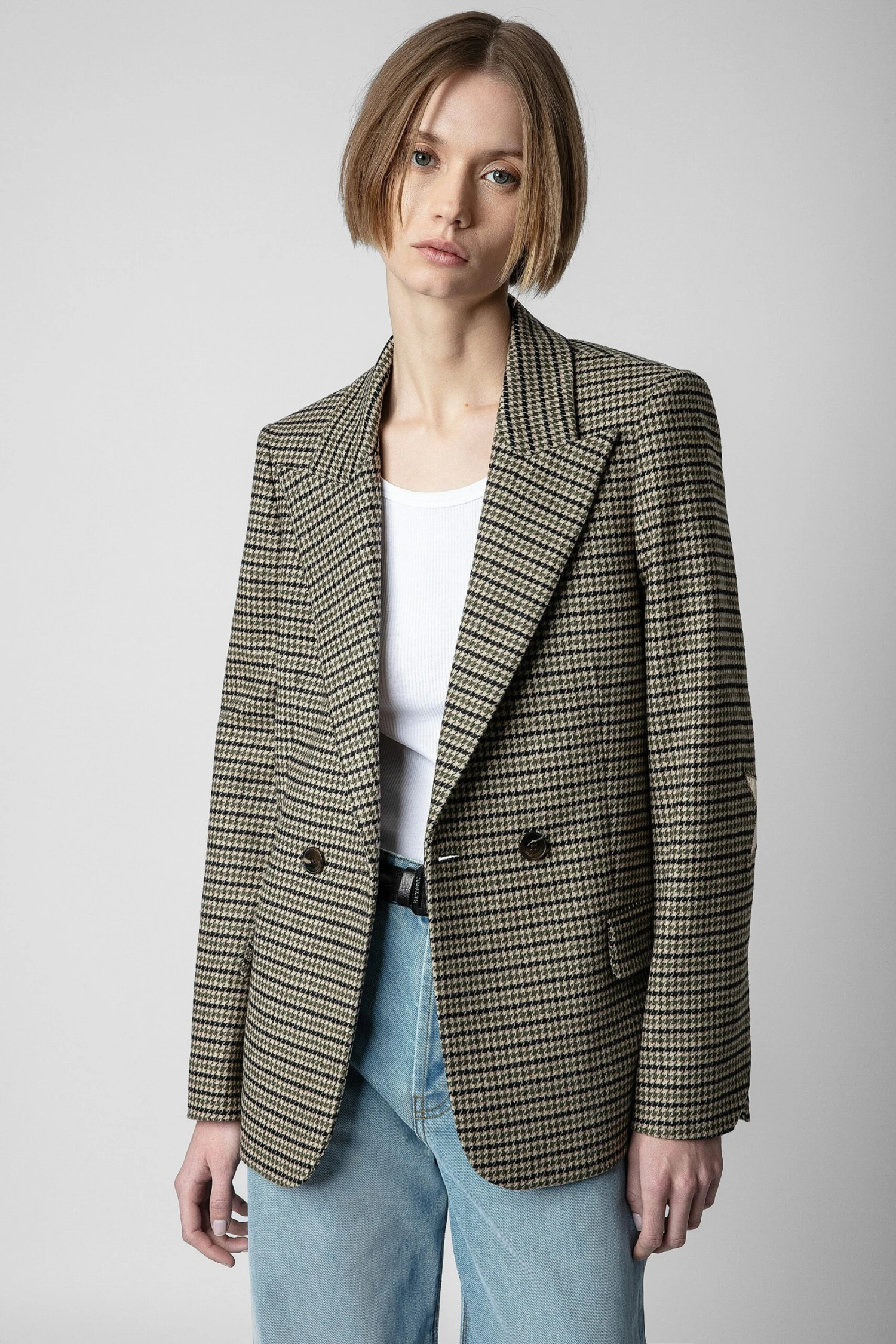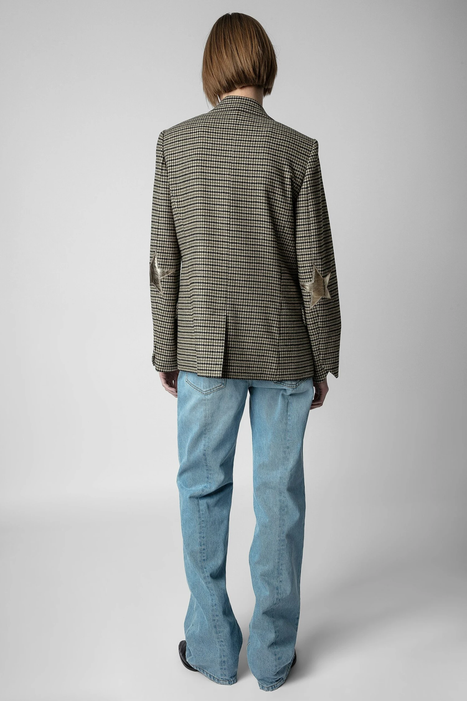 The Visit Car Patch Blazer sports a houndstooth check and features contrasting star patches on the elbows. With a pointed collar, long sleeves and flap pockets, it creates a decidedly elegant, structured look.
